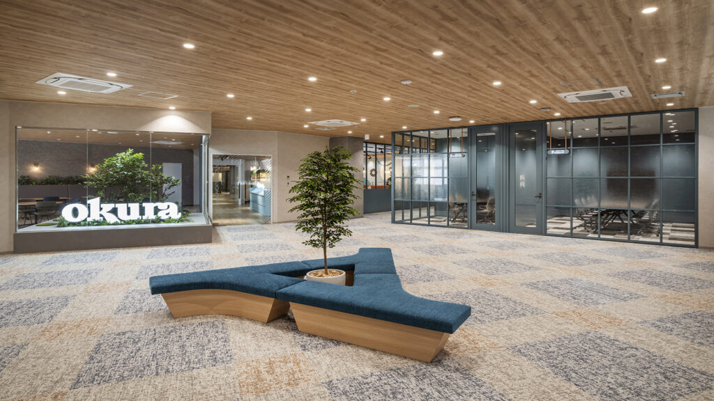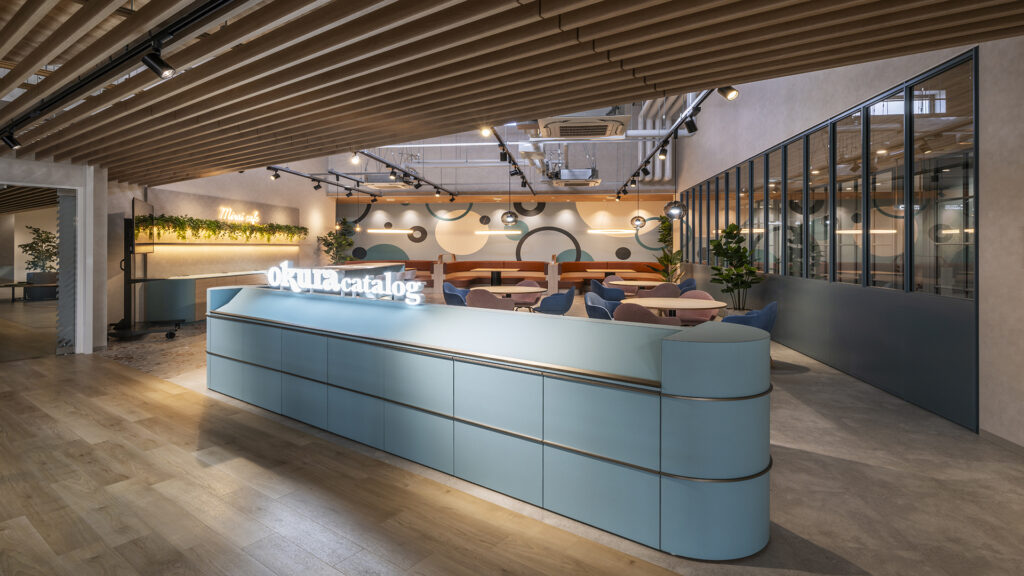 コーポレートロゴを中心とした印象的な空間でお客様をお出迎え