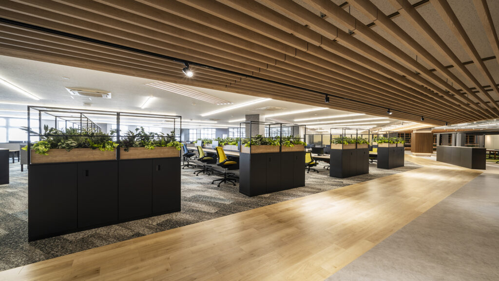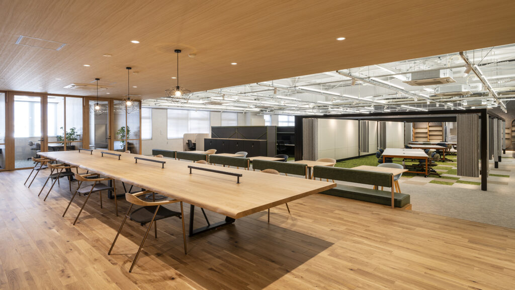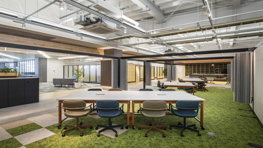 フリーアドレスを基本としつつ、集中・協働・交流など目的に応じた多様なワークポイントを整備。産学連携を含む外部企業や研究者との協働を見据え、創造性とスピードを両立する先進オフィスの実現を図りました。